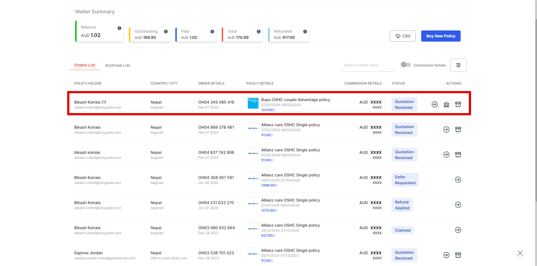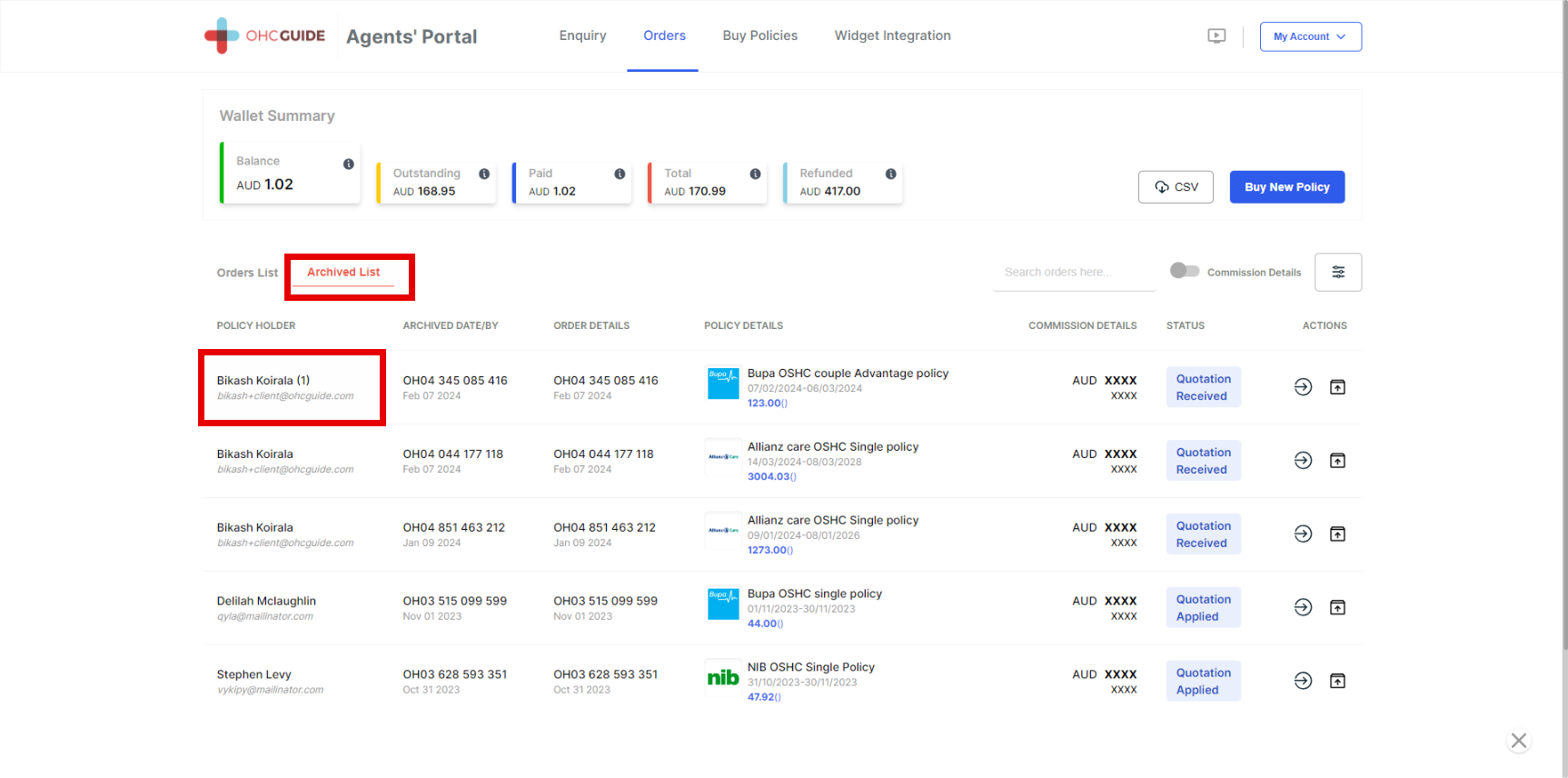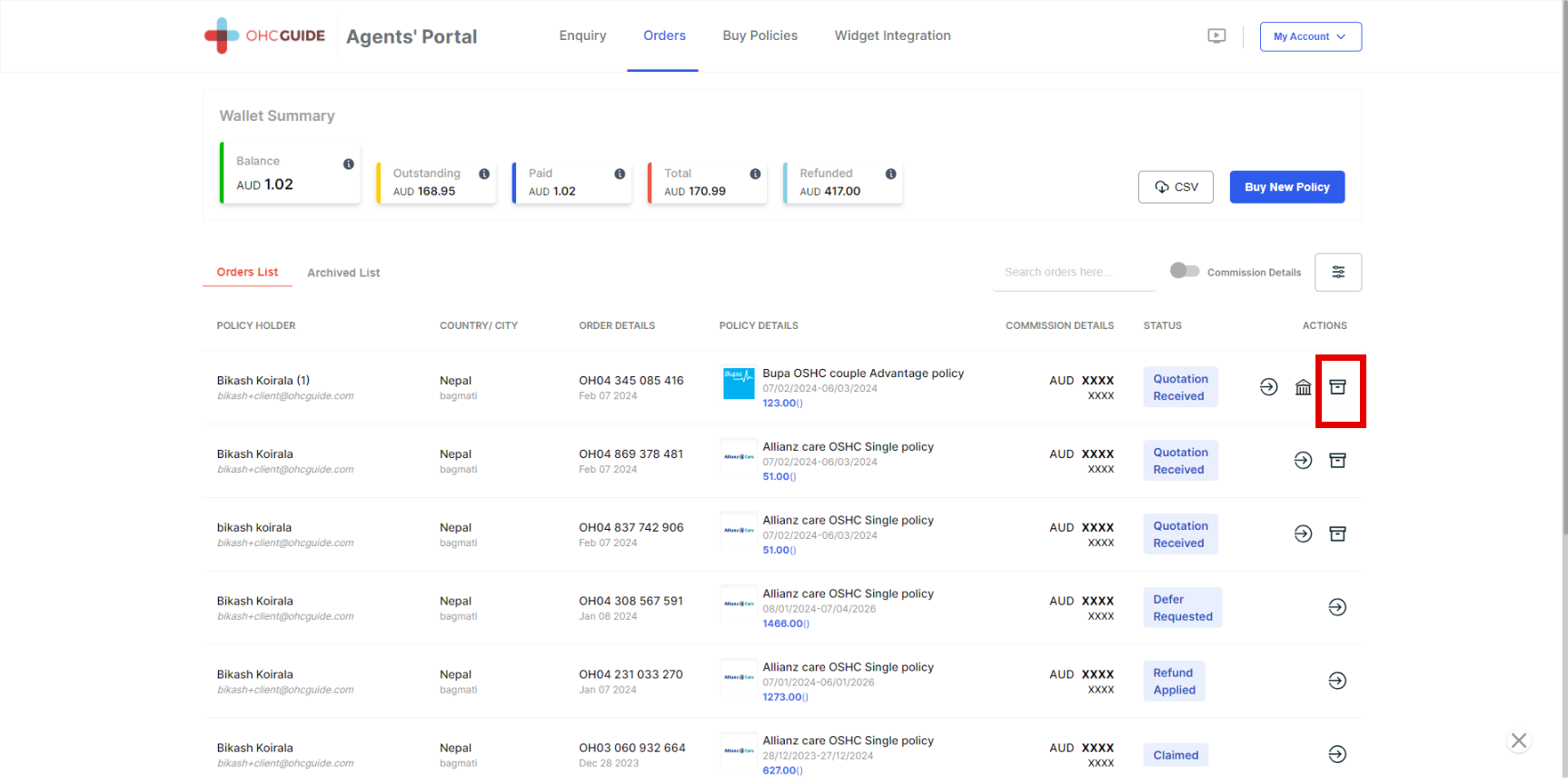 If you want to remove or hide unnecessary policies purchased from the orders list, here are the steps to take.
