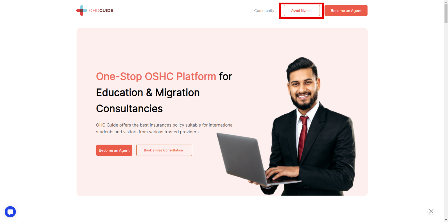 Step 2 - Click on the "Agent Sign-in" button at the top of the website.